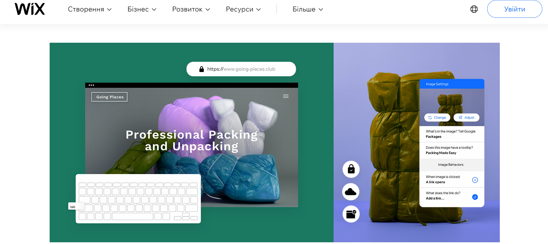 Wix использует скриншоты, чтобы привлечь пользователей и продемонстрировать, как работает их сервис.